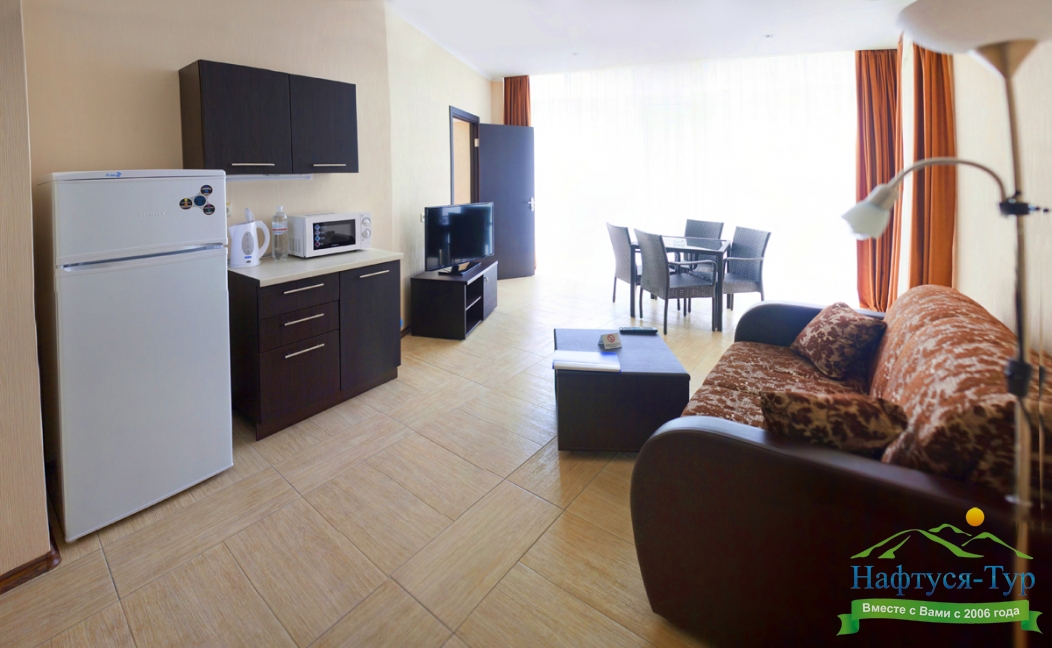 Отель современный и новый. Отдыхали семьёй в апартаментах с двумя спальнями и огромной гостиной. Номер достаточно просторный, даже подойдёт для большой семьи. Очень поразила идеальная чистота и приличная мебель.
