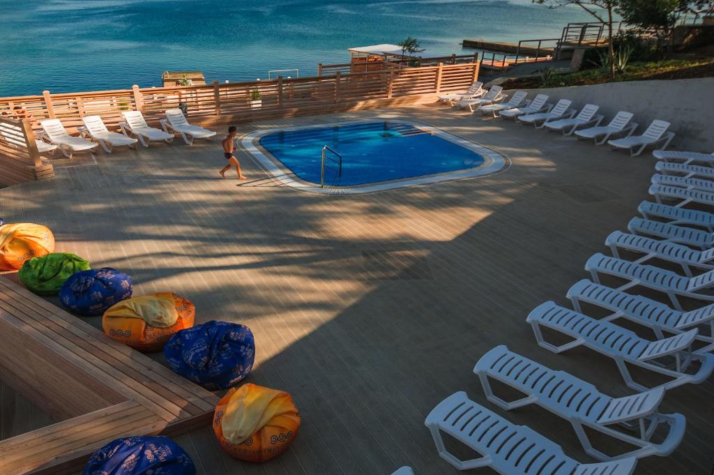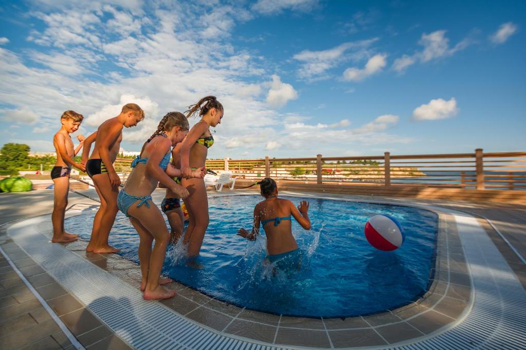 Оба бассейна отеля с соленой водой и подогревом. Для безопасного детского отдыха глубина в бассейне для самых маленьких гостей — 50 см.
