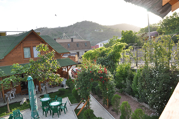 Поездом до ж/д вокзала г.Симферополь, далее от автостанции "Курортная" маршрутным такси Симферополь- Рыбачье до пос.Солнечногорское, в Солнечногорском остановка "Поворот на Генеральское-Водопад-Джур-Джур", по ул Вишнёвая вверх 350 м первый поворот направо и вверх 50 м по пер Персиковому до отеля.
