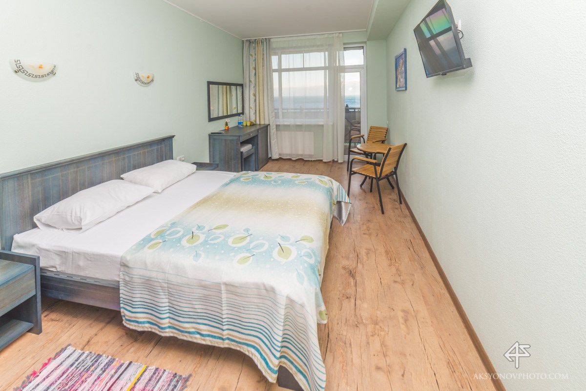 Отель расположен недалеко от пляжа(5-7 мин по парку с небольшим количеством ступеней), пляж с собственными лежаками, тентами и полотенцами, в отеле новый ремонт, большой балкон с мебелью, помимо того, что в описании на сайтах: халаты, тапочки, кулеры почти на каждом этаже, великолепный ресторан!!!, бассейн, сауна, хамам, детская анимация!!!, ежедневная уборка и высокий уровень сервисного обслуживания всего персонала.