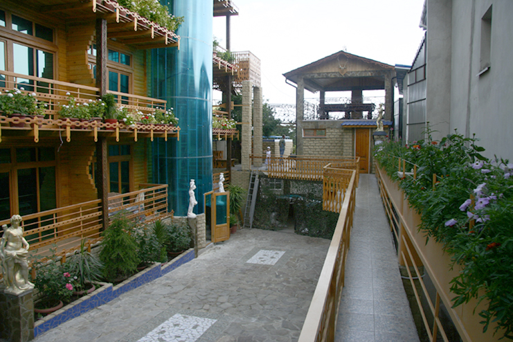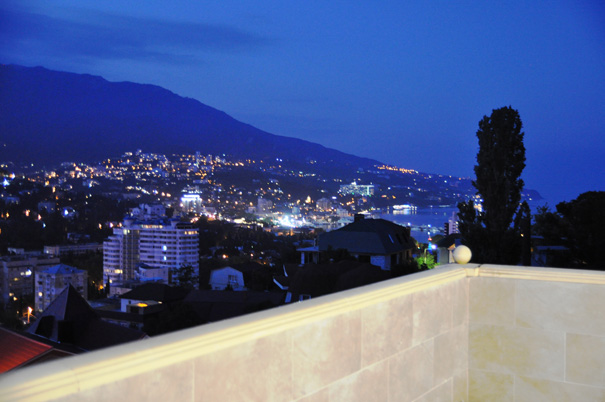 В окна, выходящие на южную сторону, видны Аю-Даг (Медведь-гора) и скалы-близнецы Адалары, северную сторону, можно видеть участок грандиозного скального амфитеатра над Гурзуфом.