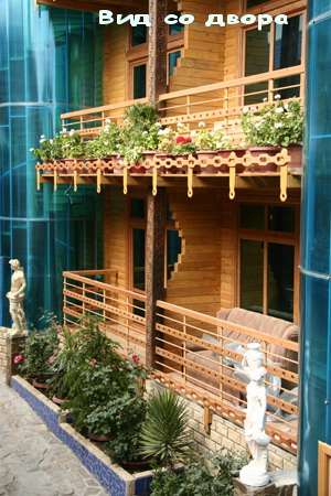 Все номера виллы "Княжий град" имеют эко-отделку из дерева и балкон с видом на Черное море и горные леса. В ванных комнатах есть тапочки и халаты.