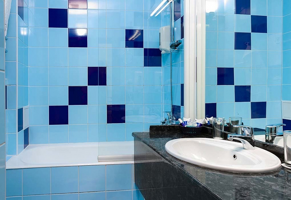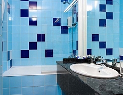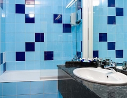 с ванной, тапочки, туалетные принадлежности, фен, халат