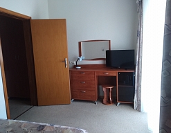 вешалка, зеркало, кровати односпальные, прикроватные тумбочки, столик журнальный, стулья, шкаф