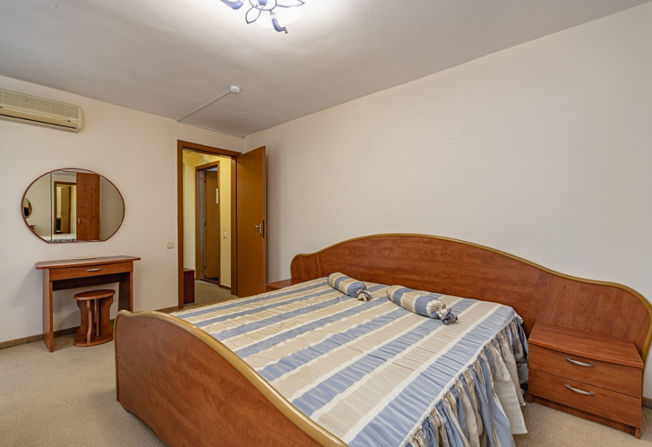 вешалка, зеркало, кровать двуспальная, прикроватные тумбочки, столик журнальный, стулья, шкаф