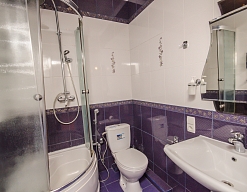 с душевой кабиной, тапочки, фен