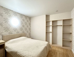 вешалка, диван раскладной, зеркало, кровать двуспальная, кухонная мебель, прикроватные тумбочки, стол, стулья, шкаф