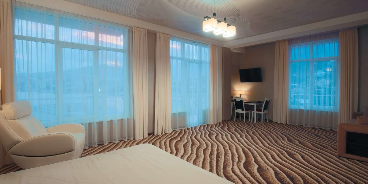 Удобные просторные номера оснащены сейфами, современной сантехникой с гидромассажными ванными, красивой и уютной мебелью. В стоимость проживания в нашем Гостевом Доме входят завтраки в ресторане «Галерея вкуса» , который находится на восьмом этаже отеля и имеет большую, просторную, видовую террасу.