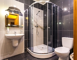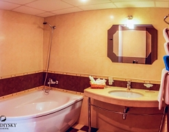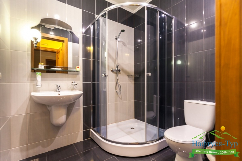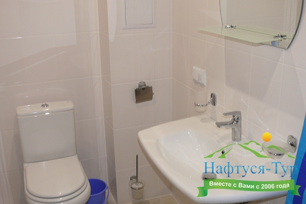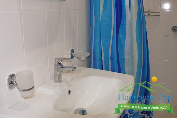 2 санузла, с ванной и душевой кабиной, тапочки, туалетные принадлежности, фен, халат