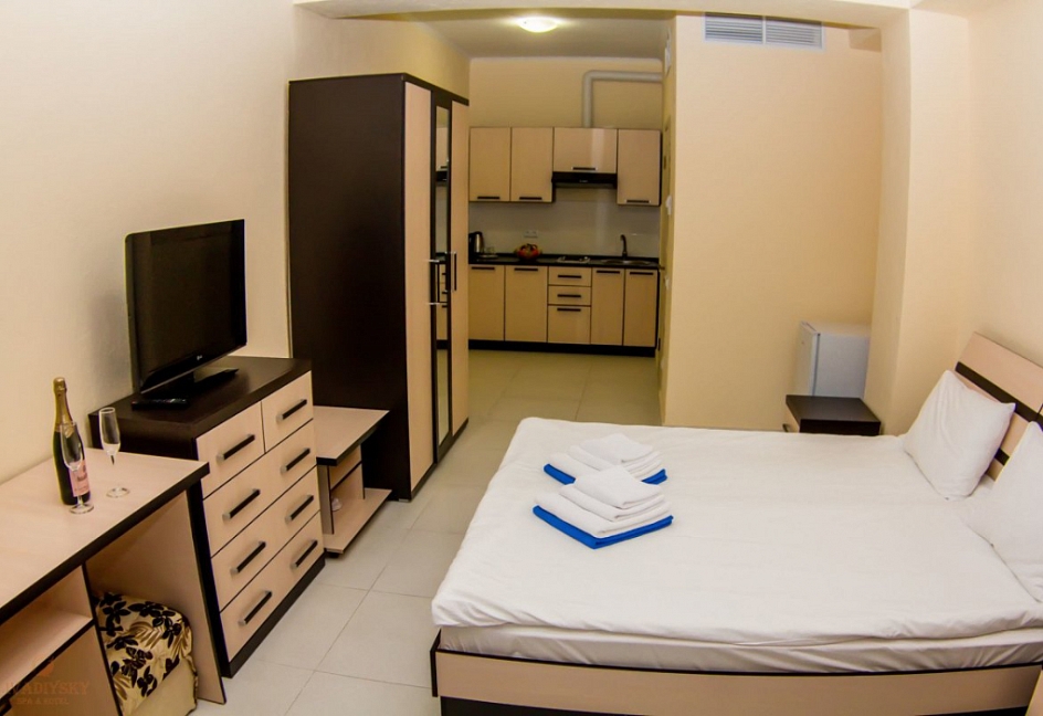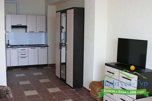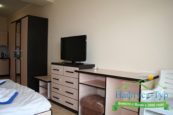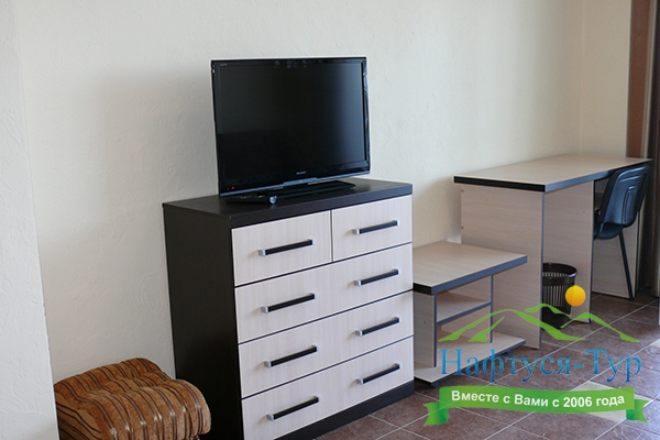 сейф, система общего кондиционирования, телевизор ЖК, холодильник, чайный набор посуды, электрочайник