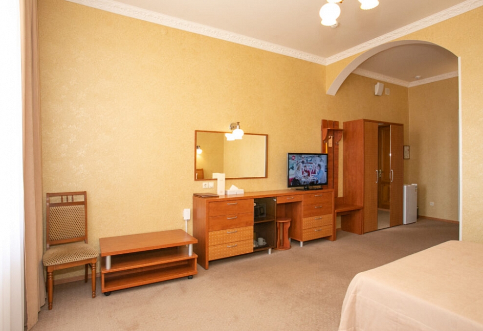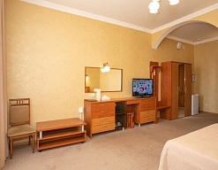 Четырех этажное здание лифтом не оснащено. Номерной фонд располагается со 2 по 4 этажи. В каждом номере санузел с ванной, телевизор, холодильник, кондиционер, телефон, wi-fi доступ в интернет.