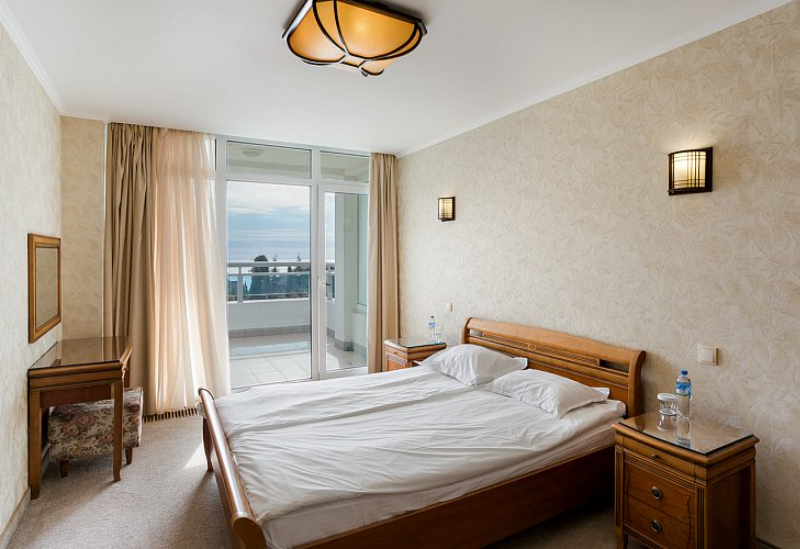 Все достоинства СПА отеля можно оценить самым высоким балом. Удачное расположение отеля позволяет разглядеть с одной стороны великолепное Чёрное море, с другой-вид на гору Ай-Петри. Разместили нас в апартаментах. Большая площадь наполненная всем необходимым, но если чего-то не хватало обращались на рецепцию. Девушки быстро и радостно устраняли неудобства. Уборка ежедневная. Вообще администраторам, официантам и уборщицам большое человеческое спасибо за предоставленный нам комфорт и уют. В ресторане наедались до сыта и даже больше. Всё свежеприготовленное и такое аппетитное!!! В прекрасном СПА комплексе приятно проводили время. Не хотелось уходить. Ещё имеются два бассейна с морской водой. К отлично оборудованному пляжу добирались канатной дорогой. В наличии были лежаки с матрасами,недалеко бар, отдельное место для курения. Кто хочет реально отдохнуть и расслабится вас ждет данный СПА отель. Делайте свой выбор в его пользу и обращайтесь в фирму Нафтуся Тур, девочка Анна, и билеты, и трансфер и отличный подбор отеля.