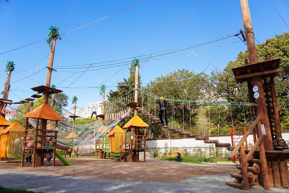 Санаторий расположен в живописном районе рядом с морем и горами. Это отличное место для семейного отдыха, потому что на территории отеля предусмотрена едва ли не лучшая в Крыму инфраструктура для детей: парки развлечений и аттракционы, услуги нянь и аниматоров.