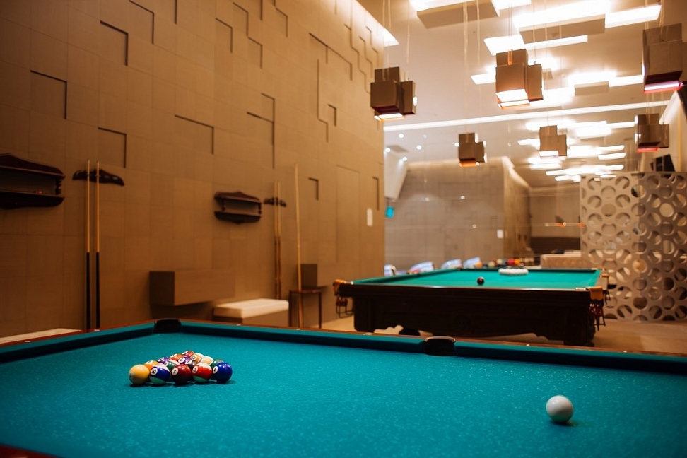 открытый (площадью 2000 кв. м) и крытый (площадью 500 кв. м) бассейны с подогреваемой пресной водой в главном корпусе.