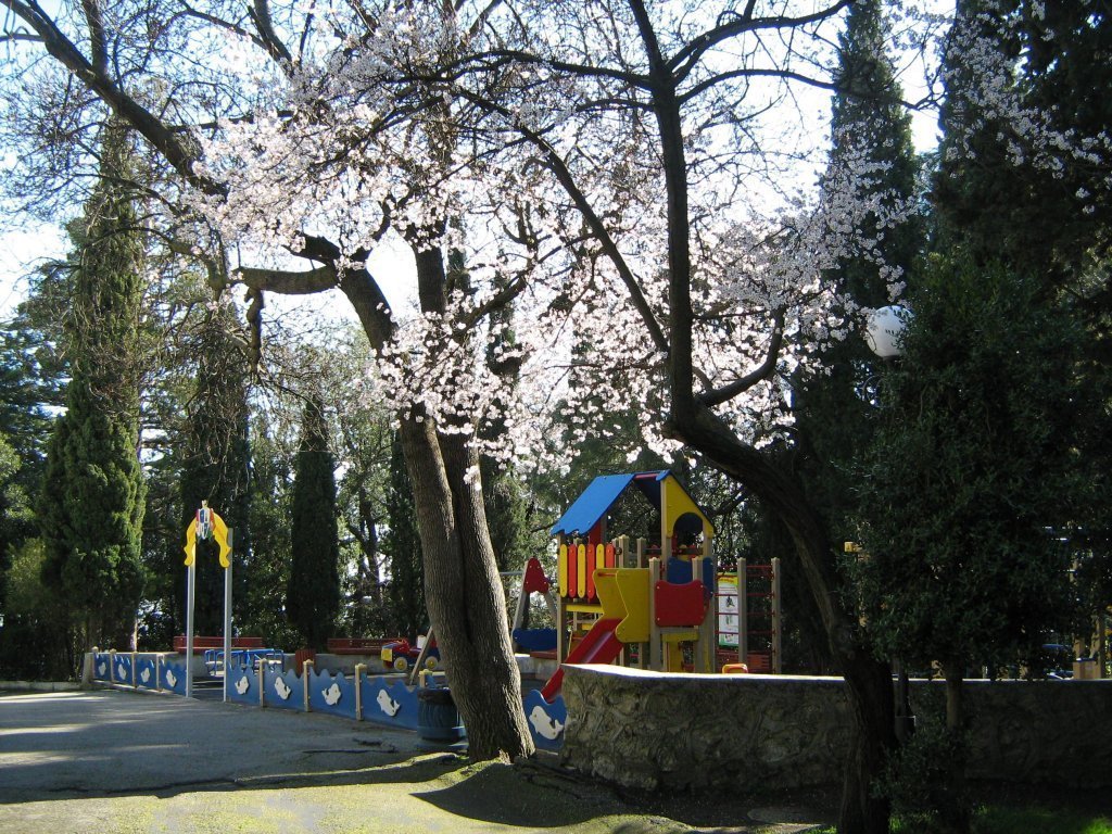Территория санатория, парк насчитывает более 300 различных видов садово-парковых, в том числе экзотических растений, основную часть которых составляют вечнозеленые и хвойные породы.