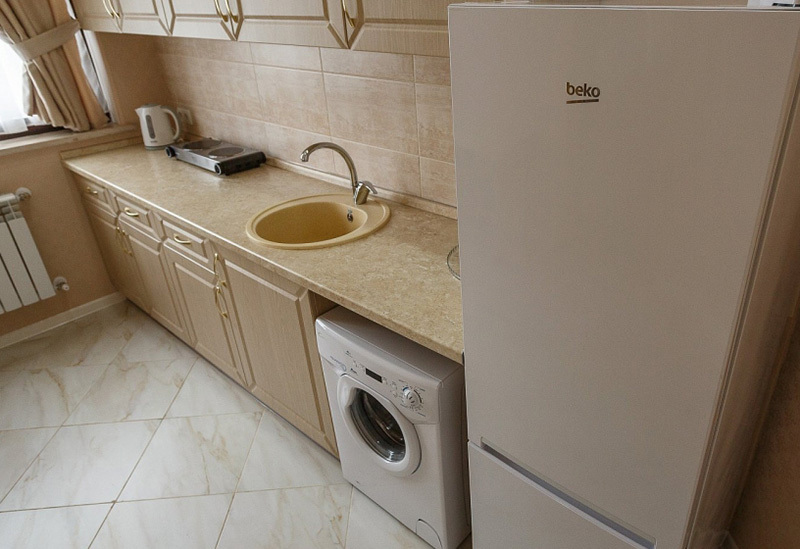 гладильная доска, кондиционер, набор посуды, телевизор, телефон, утюг, холодильник, электрочайник