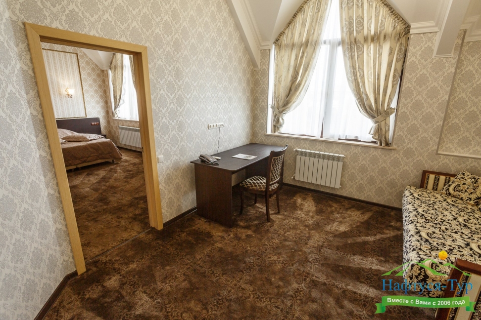 Корпус №2 (3 этажа): 2-местный 1-комнатный полулюкс; 2-местный 2-комнатный люкс; 2-местный 3-комнатный люкс; 2-местный 3-комнатный люкс (№14); 2-местный 3-комнатный люкс-апартамент.