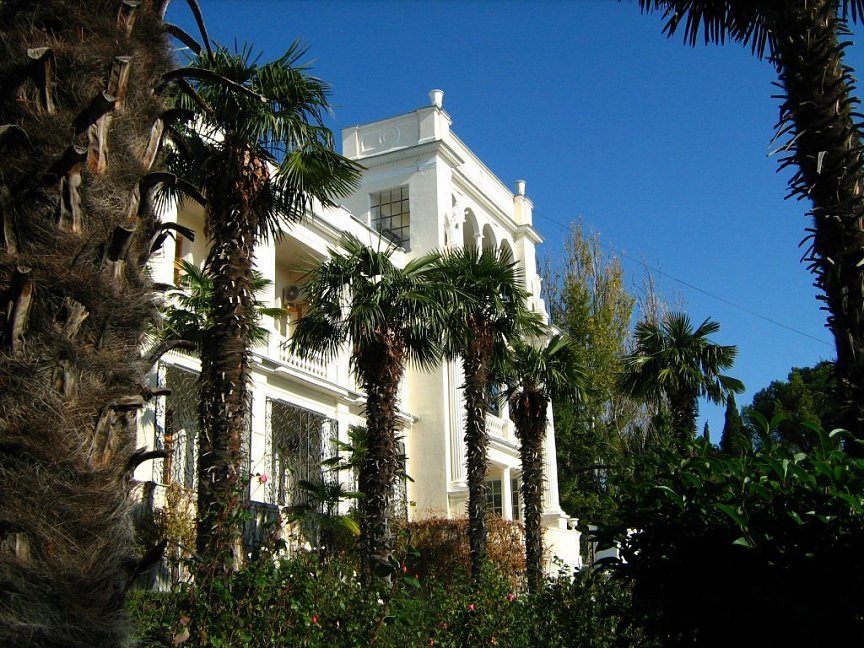 в 15 км к западу от города Ялты в п. Кореиз, на территории уникального парка - памятника садово-паркового искусства начала ХХ века, площадью 8,5 га.
