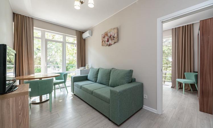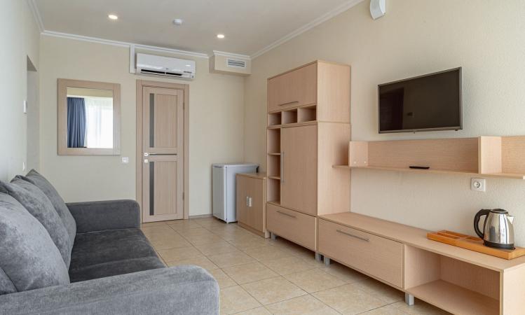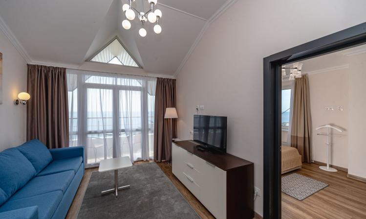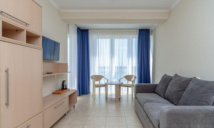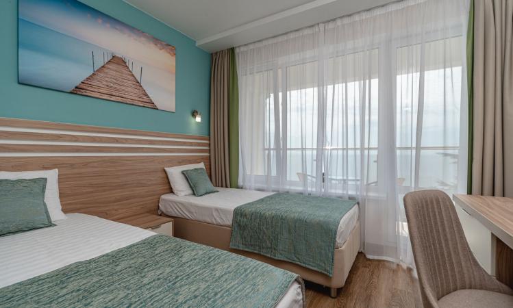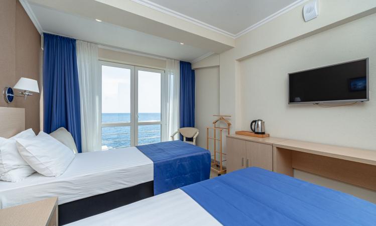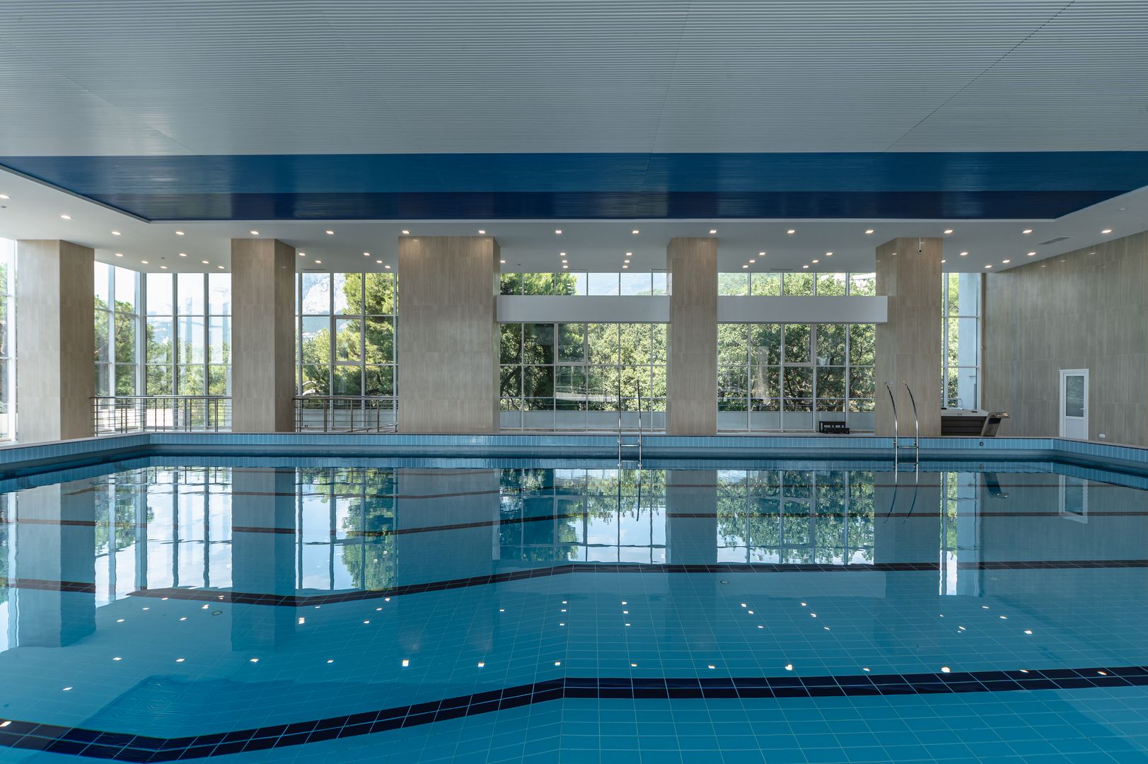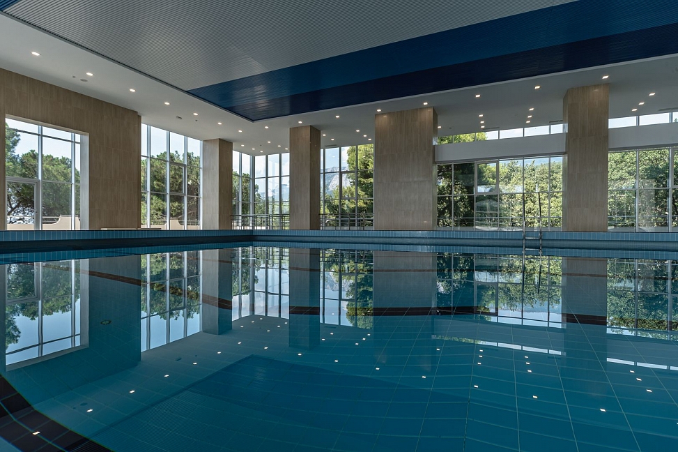В санатории имеется большой комплекс бассейнов с морской водой, спортивные площадки, фитнес-центр, бильярдный зал и собственный пляж с оборудованием. Комфортабельные номера оснащены всем необходимым для комфортного проживания, таким как кондиционеры, телевизоры, холодильники, сейфы, интернет и прочее.