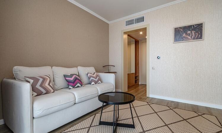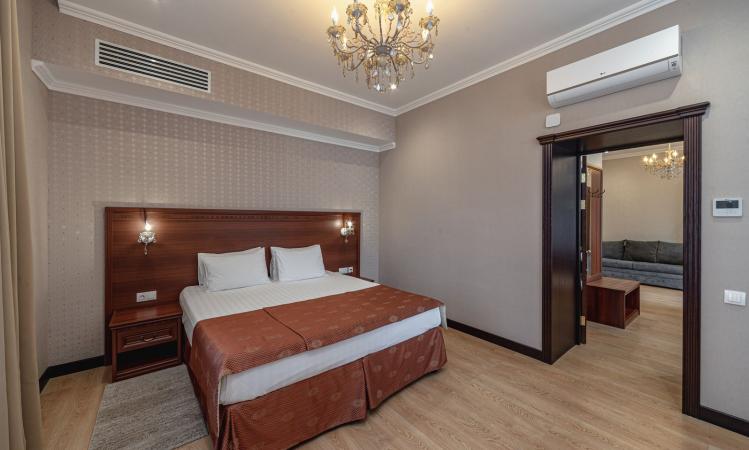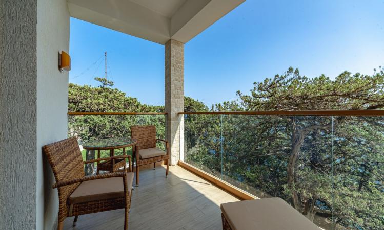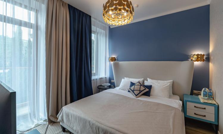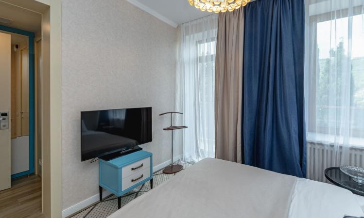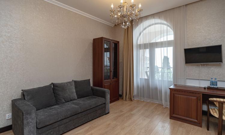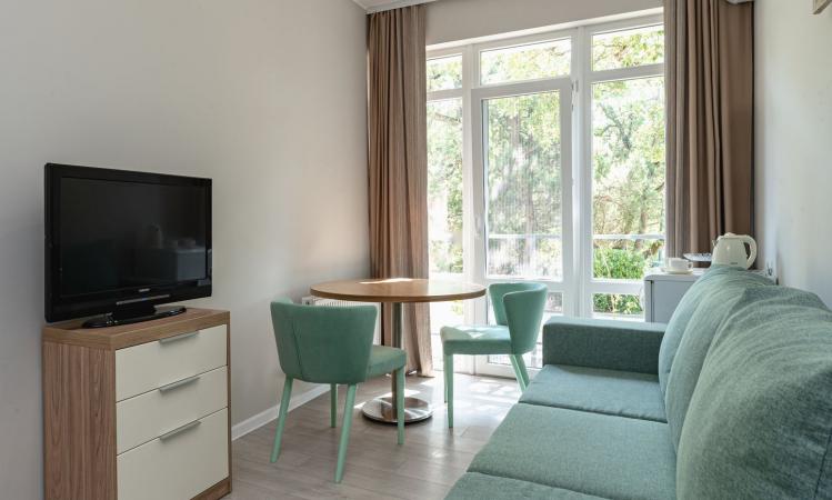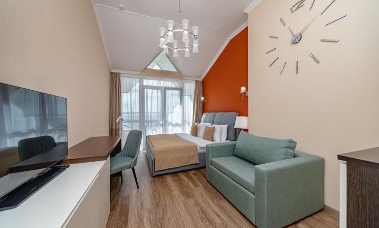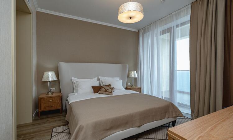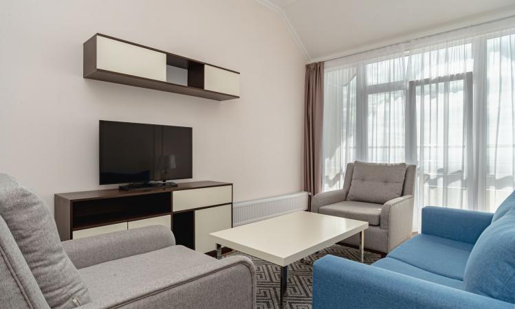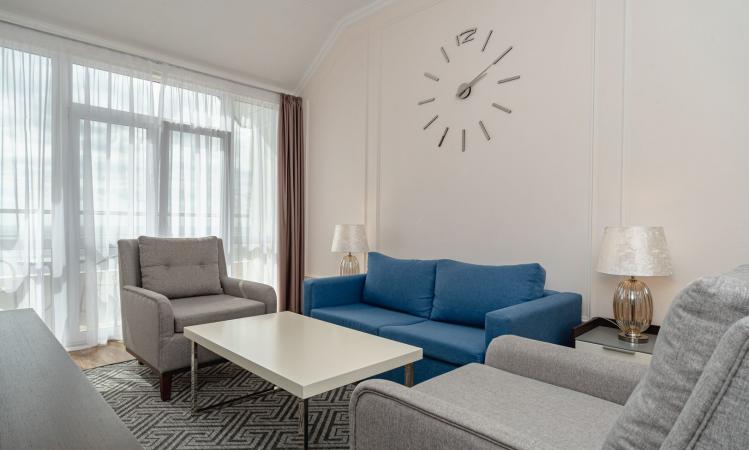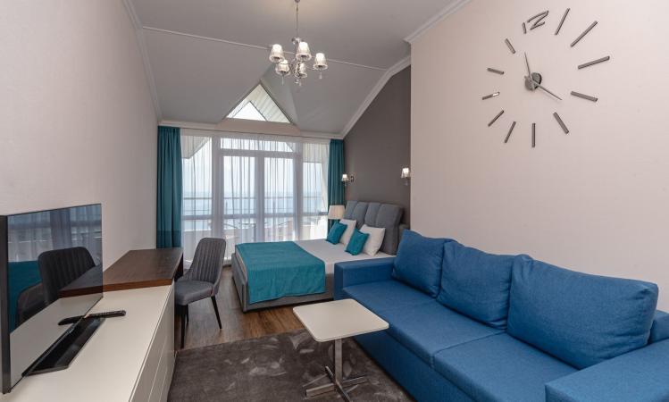 В санатории имеется большой комплекс бассейнов с морской водой, спортивные площадки, фитнес-центр, бильярдный зал и собственный пляж с оборудованием. Комфортабельные номера оснащены всем необходимым для комфортного проживания, таким как кондиционеры, телевизоры, холодильники, сейфы, интернет и прочее.