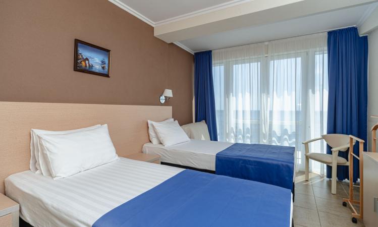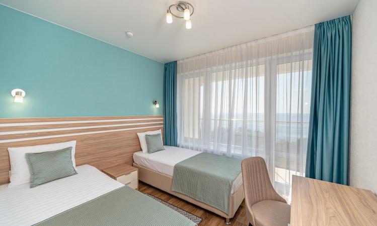 - корпус 9, 4 этажа, 10 м до пляжа. Все номера с видом на море