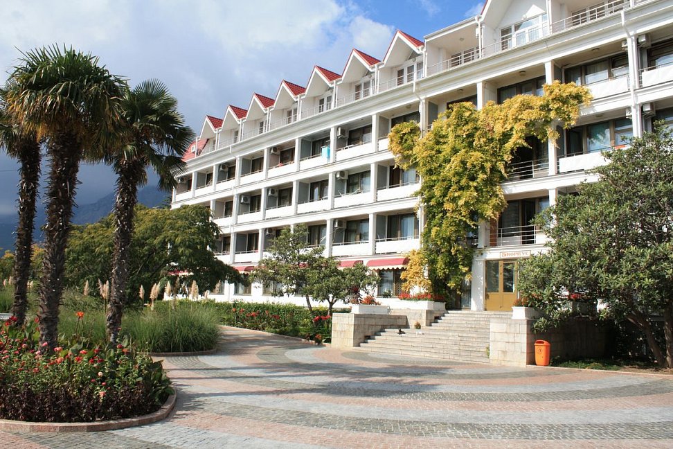Санаторий «Днепр» в Гаспре, Крым, специализируется на лечении заболеваний дыхательных, сердечно-сосудистых и костно-мышечных систем.