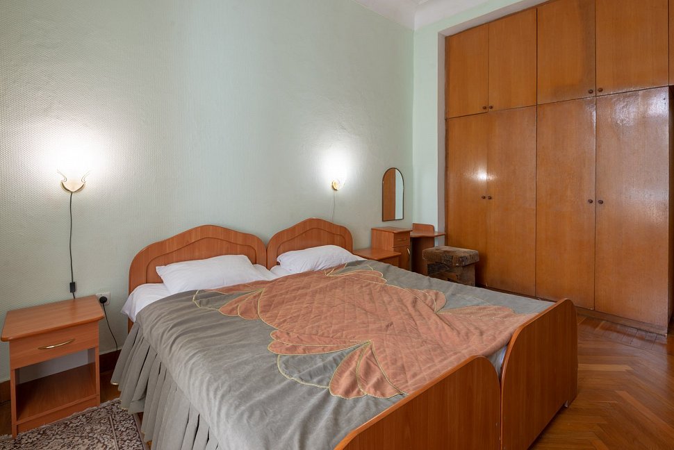 зеркало, кровати односпальные /одна двуспальная кровать, прикроватные тумбочки, шкаф