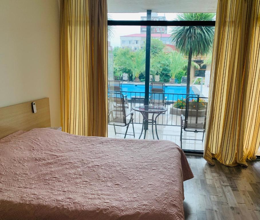 Поездом до ж/д станции Кобулети, далее на маршрутке «Батуми-Поти» до остановки «Пр-т Агмашенебели, 323», далее пройти 420 м до отеля.
