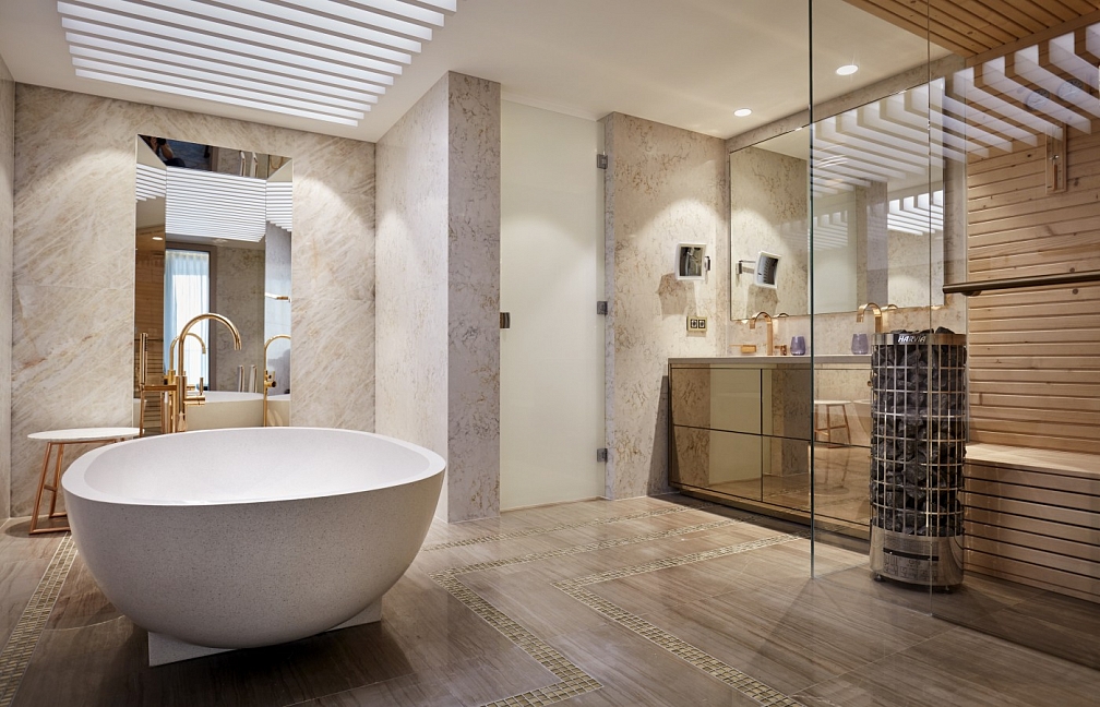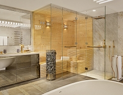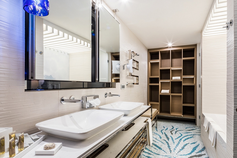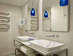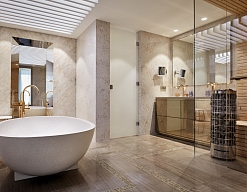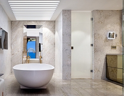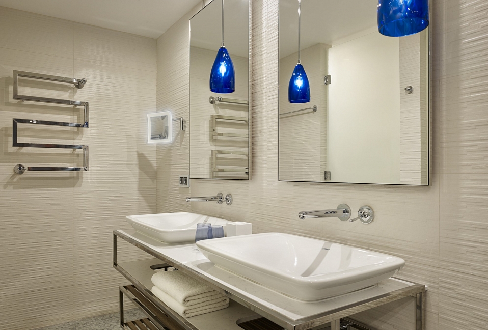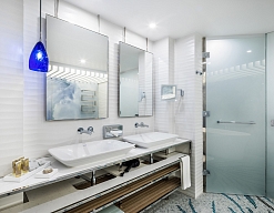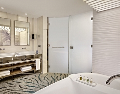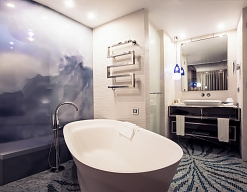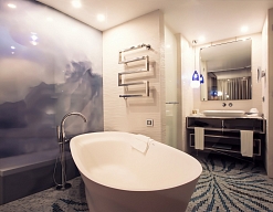 Ванная комната: ванна , душевая кабина , косметический набор , фен , халат