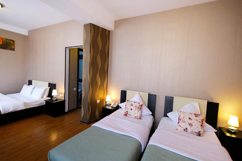 Самолетом до аэропорта г. Тбилиси, далее на автобусе №337 до остановки «Метро Авлабари», далее пройти пешком 340 м до отеля.