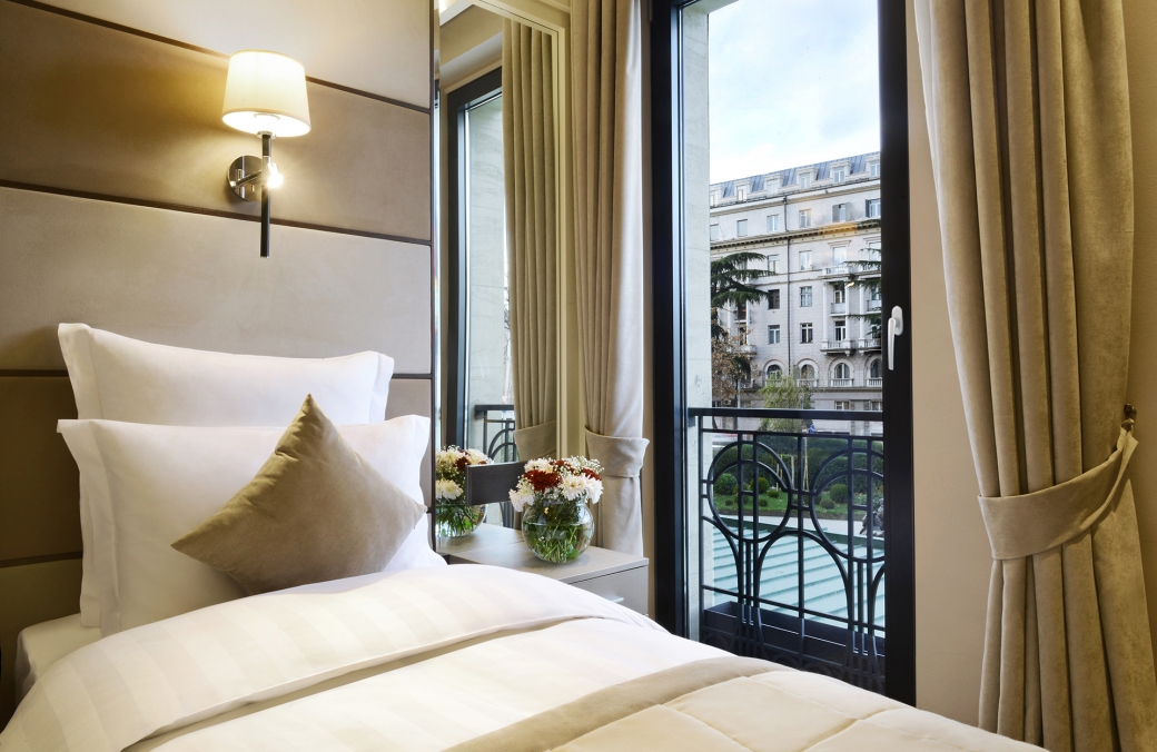 Номера отеля "Ambasadori" созданы, чтобы обеспечить ваш комфорт и удовлетворить самые взыскательные потребности. Они оформлены в современном стиле с элементами грузинской культуры и оборудованы всем необходимым, включая кондиционер, телевизор, мини-бар и бесплатный Wi-Fi. Вы сможете расслабиться и насладиться отличным видом на город из окна вашего номера.