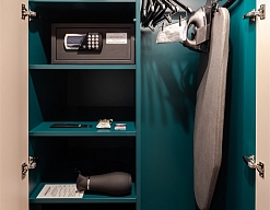 гладильная доска, кондиционер, мини-холодильник, сейф, телевизор ЖК, телефон, утюг, электрочайник