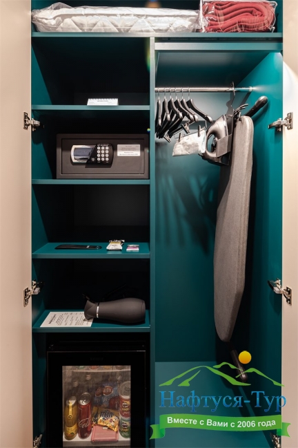 гладильная доска, кондиционер, кофемашина, мини-холодильник, сейф, телевизор ЖК, телефон, утюг, электрочайник