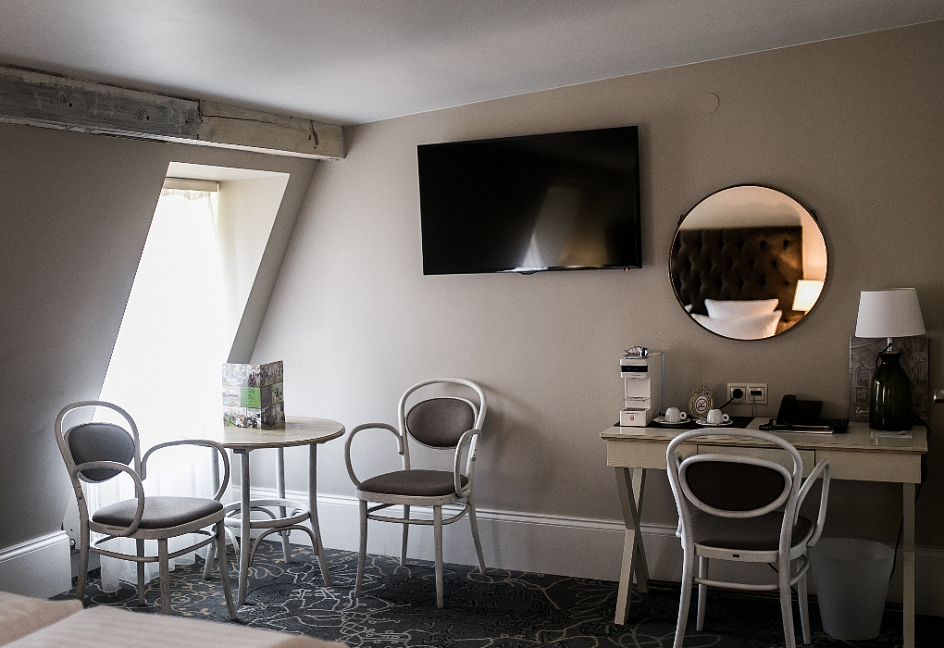 эксклюзивный Отель в историческом месте города и в историческом здании. Понравилось отношение персонала, аккуратность, вежливость, доброжелательность по отношению к гостям . чистый уютный номер, где есть все и даже больше (поначалу сомневалась, что стандартный номер на мансарде будет удобен, однако, при заселении, мои сомнения развеялись: номер изумительный!).