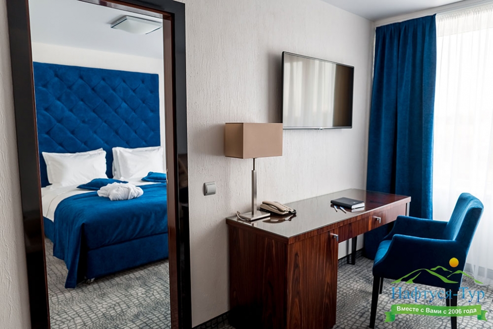 кровать двуспальная/ две полутороспальные кровати, прикроватные тумбочки, стол, стул, шкаф
