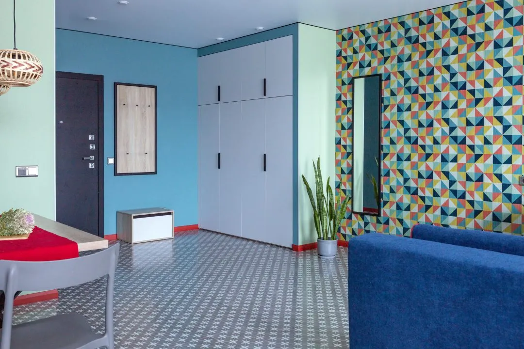 вешалка, диван раскладной, зеркало, кровати односпальные /одна двуспальная кровать, стол, стол для компьютера, стулья, тумба, шкаф