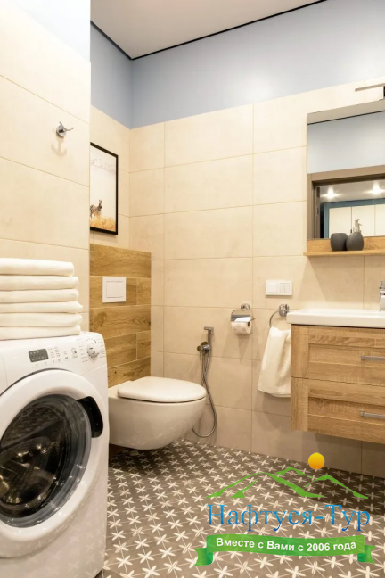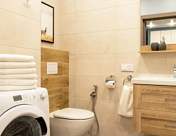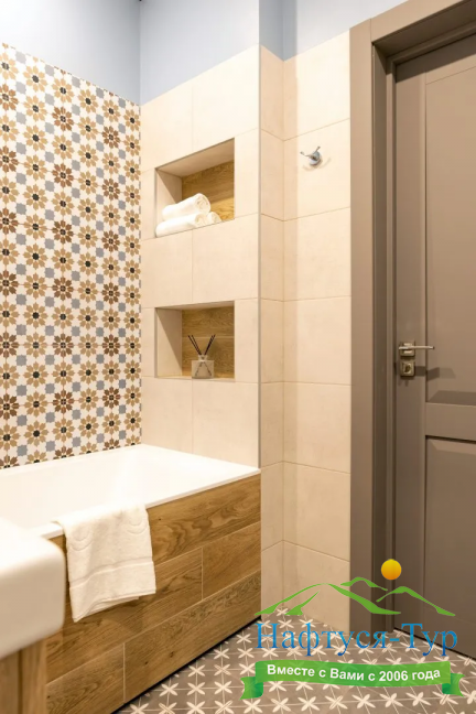 биде, с ванной/душем, тапочки, туалетные принадлежности, фен, халат