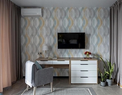 кондиционер, микроволновая печь, набор посуды, плита электрическая, посудомоечная машина, стиральная машина, телевизор ЖК, холодильник, электрочайник