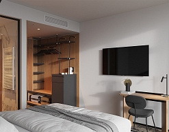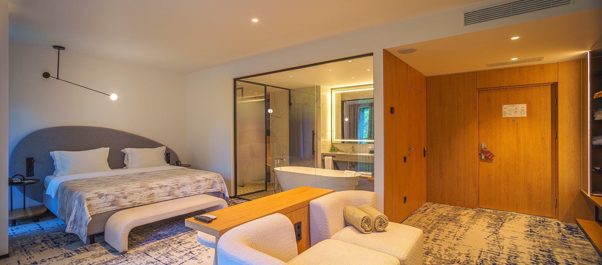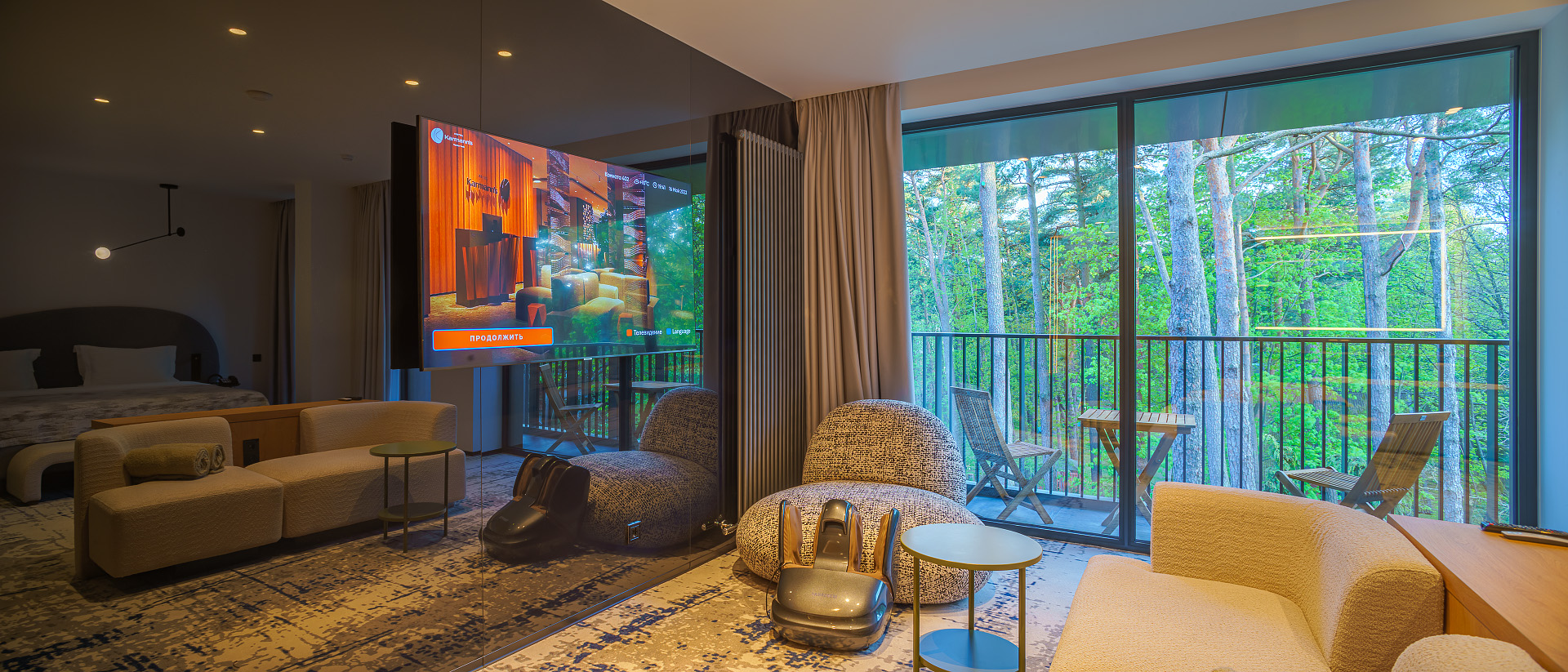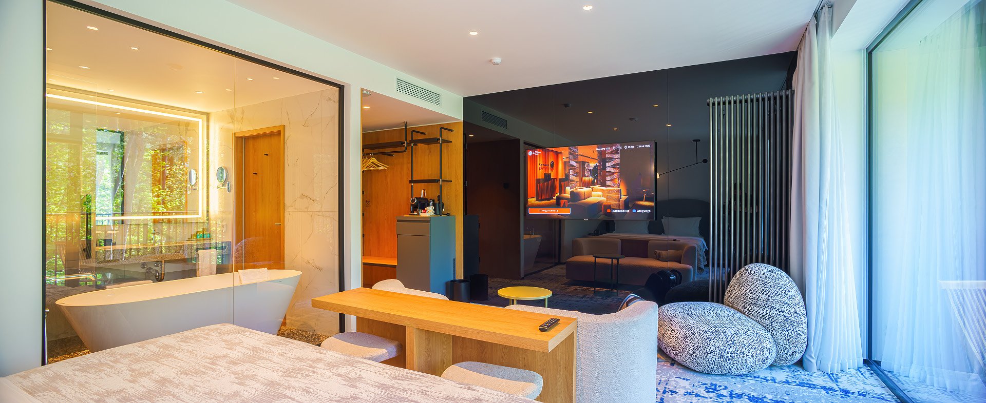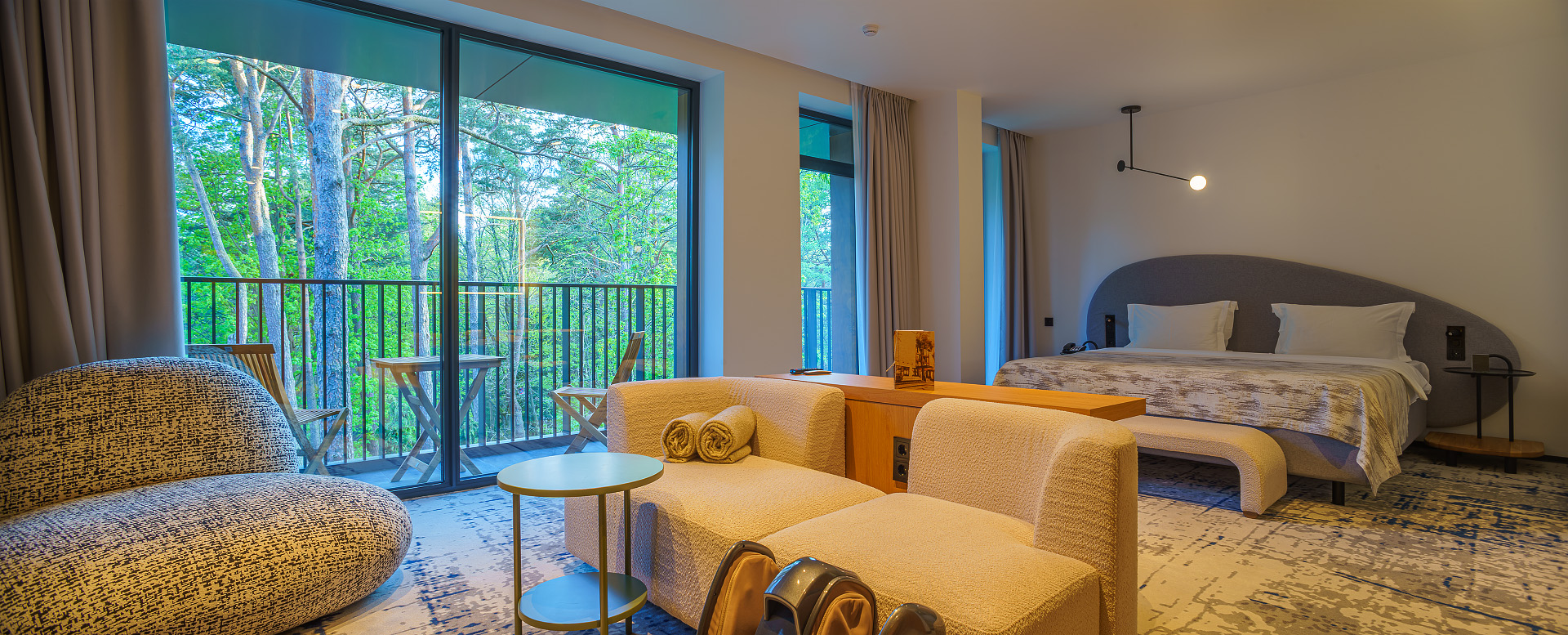 Отель Karmann’s hotel – Yantar Hall – дизайнерский отель, открытый в 2021 году, самый большой и современный в Светлогорске, уютно обосновавшийся посреди соснового леса. Панорамные окна позволяют ощущать свою причастность к целительной приморской природе.