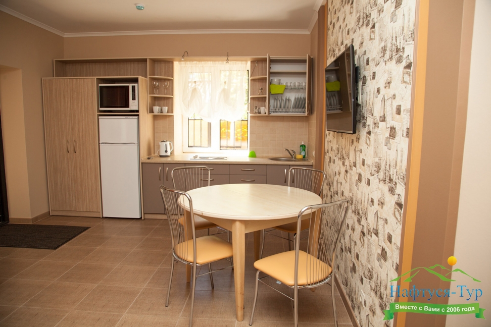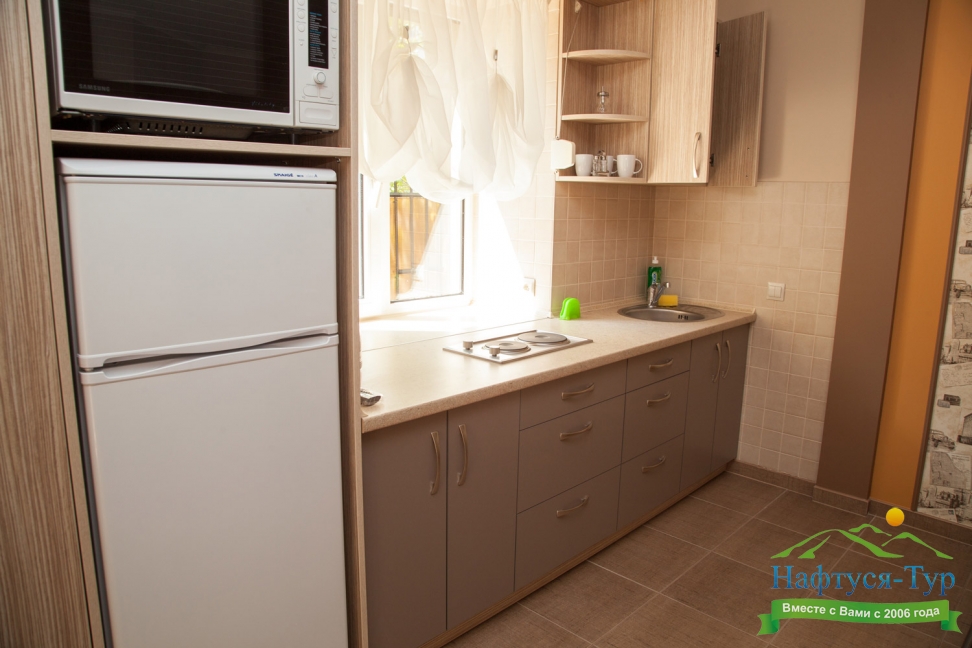 микроволновая печь, телевизор, холодильник, чайный набор посуды, электрическая плита, электрочайник