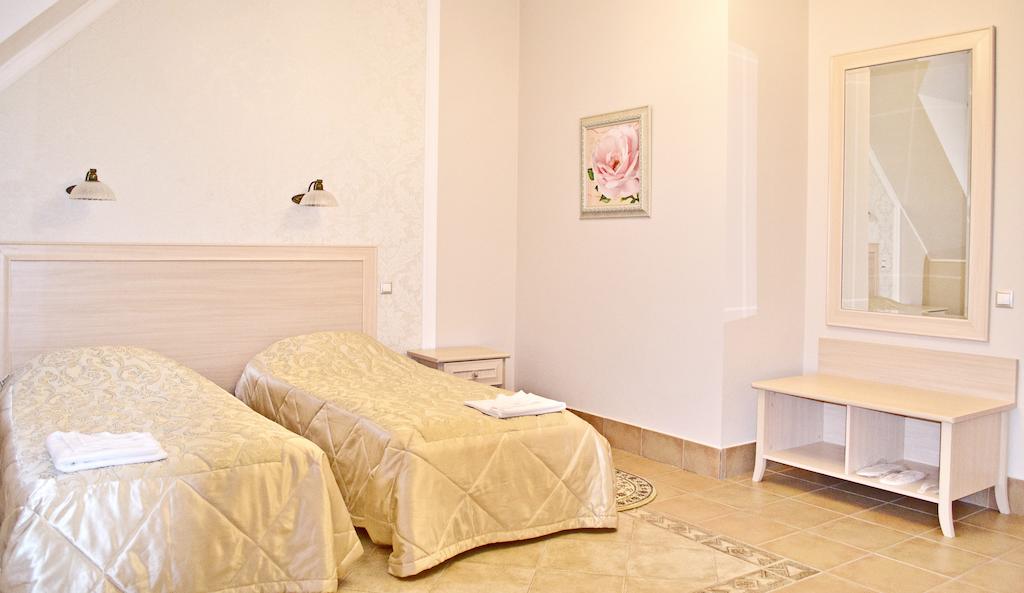 диван раскладной, зеркало, кресло, кровати односпальные /одна двуспальная кровать, прикроватные тумбочки, столик журнальный, тумба багажная, шкаф