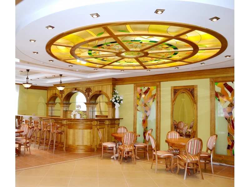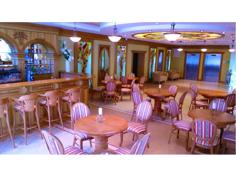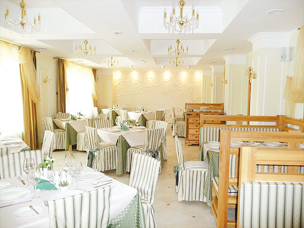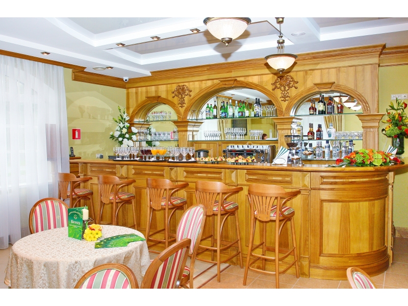 В него входит бар, оформленный в стиле настоящего немецкого гоштедта, лобби-бар и 2 ресторанных зала на 60 и 20 посадочных мест, во внутреннем дворике гостиницы расположена открытая терраса.