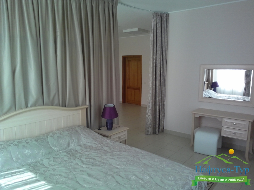 вешалка, диван раскладной, зеркало, кровать двуспальная, прикроватные тумбочки, столик туалетный, шкаф