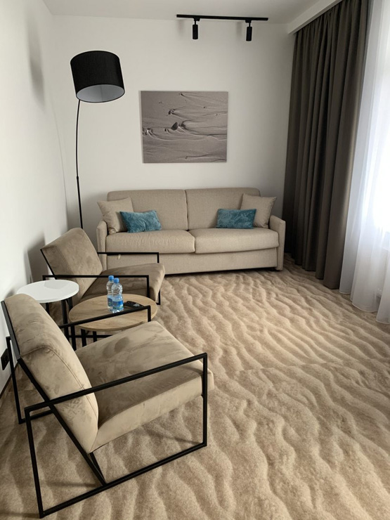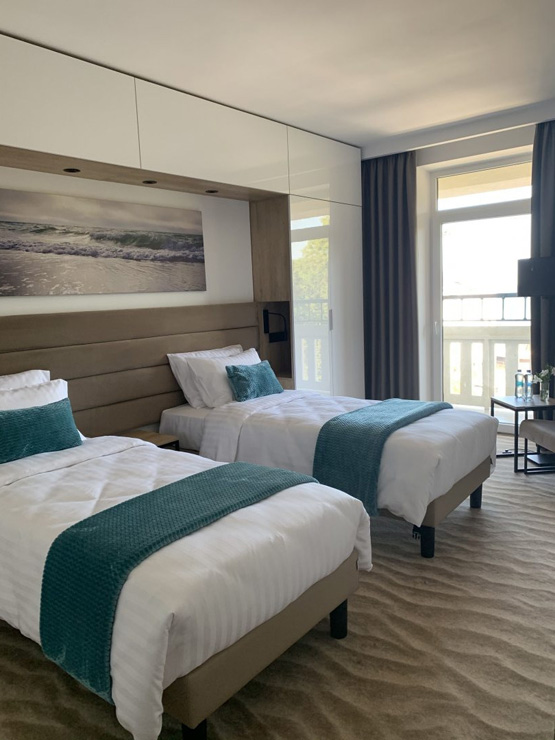 Поездом до ж/д вокзала Калининград-Южный, далее на электричке до станции «Зеленоградск-Новый», далее пройти 1,17 км до отеля.