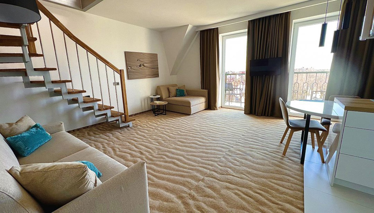 Расположение: 120 м до моря, 100 м до центра, 20 км до аэропорта Храброво