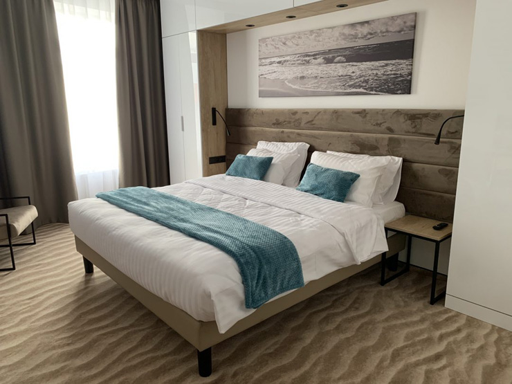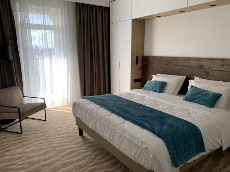 Самолетом до аэропорта Храброво, далее на рейсовом на автобусе № 244э до остановки «БСМП», далее на электричке до станции «Зеленоградск-Новый», далее пройти 1,17 км до отеля.