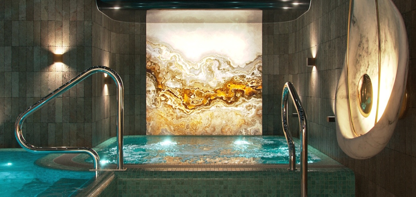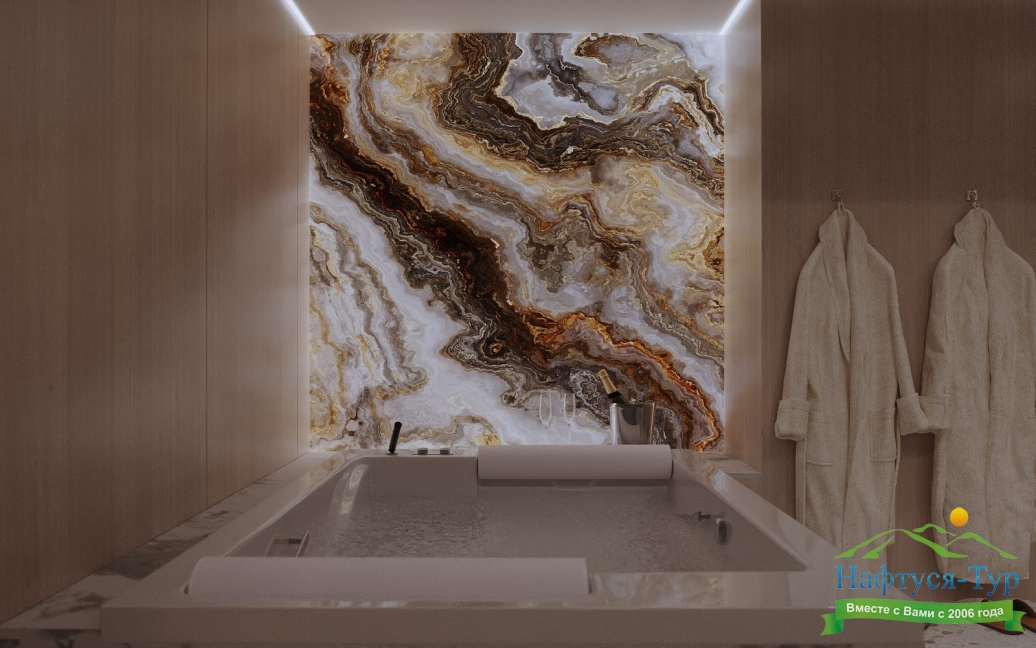 с джакузи, тапочки, туалетные принадлежности, фен, халат