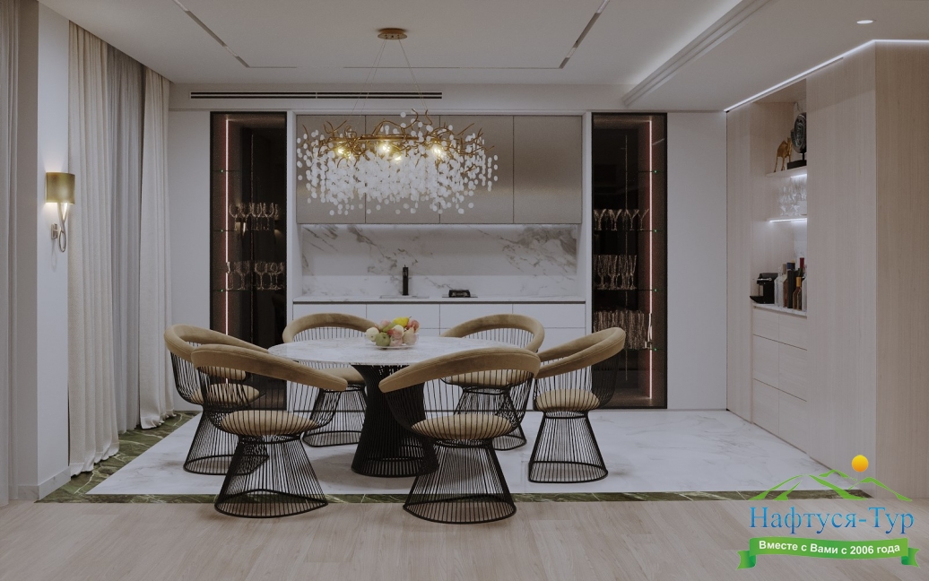 гладильная доска, кондиционер, кофемашина, микроволновая печь, мини-холодильник, набор посуды, плита электрическая, посудомоечная машина, сейф, стиральная машина, телевизор ЖК, телефон, утюг, чайный набор посуды, электрочайник