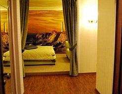 зеркало, кровать двуспальная, прикроватная тумбочка, шкаф