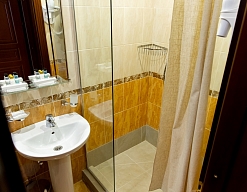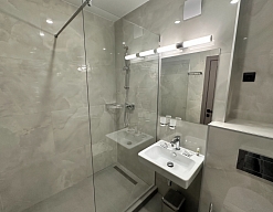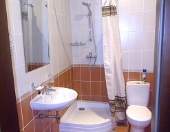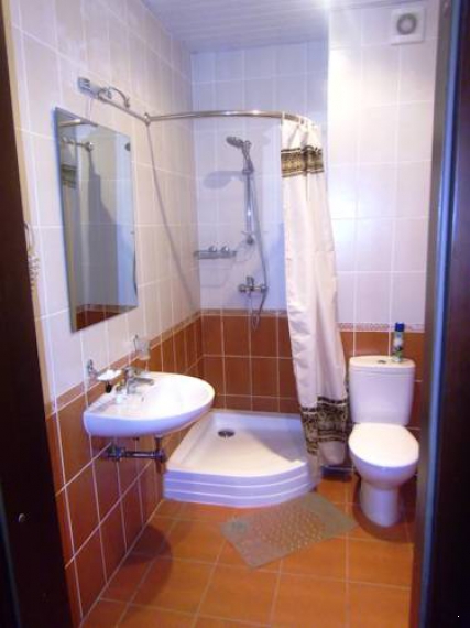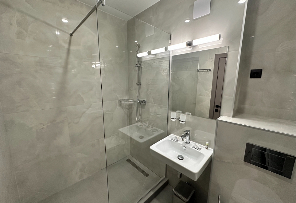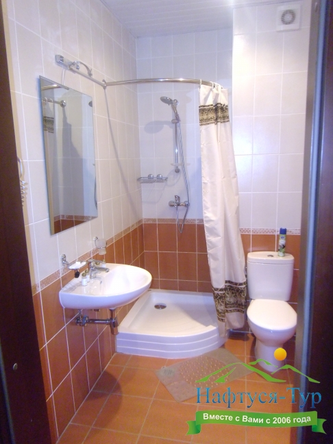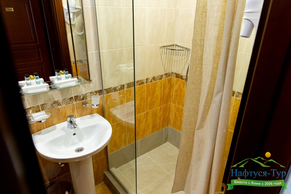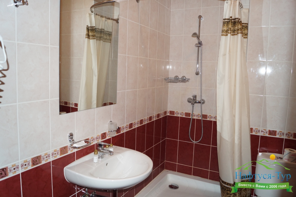 с душем (поддон), туалетные принадлежности, фен